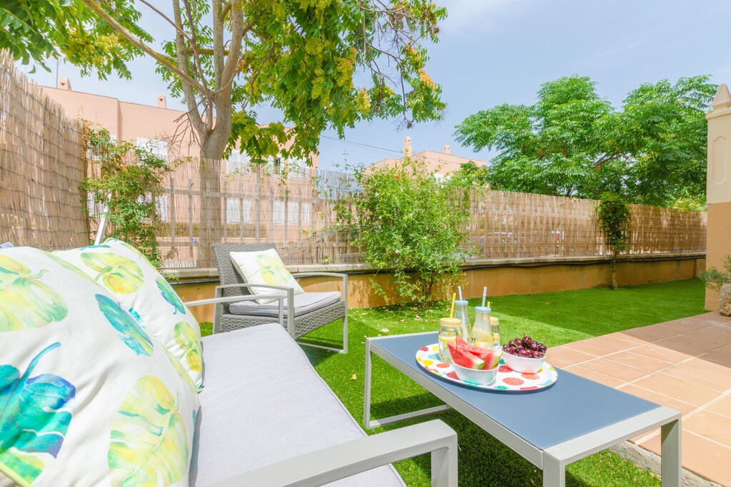 Se trata de un chalet independiente en una zona muy tranquila y residencial. Por un lado, destaca el bonito porche delantero, a la entrada de la casa, amueblado con una mesa y sillas de exterior donde poder comer o cenar al fresco, junto con dos bonitas butacas en las que puedes sentarte a tomar un café mientras disfrutas de una interesante lectura. Por otro lado, el lateral y parte trasera de la casa ofrecen una zona de césped artificial donde los pequeños de la familia pueden jugar mientras los mayores se sientan en los cómodos sofás y sillones a tomar un cocktail durante el atardecer. Y por la noche, el mejor plan es disfrutar de una deliciosa barbacoa en familia! La propiedad se encuentra vallada y hay vecinos en los alrededores.