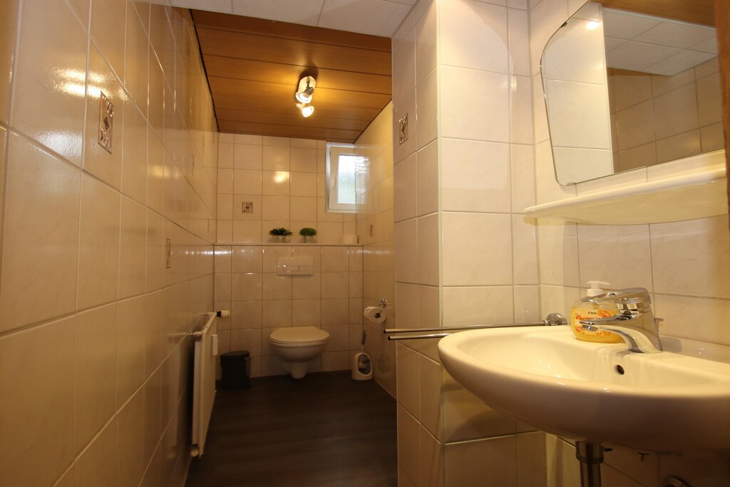 Bij aankomst bij de Bärenhütte lijkt het even alsof we niet verwacht worden, maar dat ligt aan onszelf. In de reispapieren staat duidelijk waar we moeten zijn om de sleutel op te halen. Gelukkig is onze contactpersoon (Herr Leonhardt) erg geduldig en hij legt ons telefonisch goed uit wat we moeten doen. Bij binnenkomst worden we meteen positief verrast. Wat een ruimte! En bij binnenkomst in de woonkamer, wat een uitzicht! Heerlijk. De woonkamer is modern ingericht met een heerlijke ligbank. Er is een (smart-)tv dus in de avonduren is het genieten met een filmpje. In de woonkamer is een trap naar beneden die leidt naar een slaapkamer. Deze trap heeft geen traphekje, dus hou daar rekening mee als je met (kleine) kinderen bent. Onze jongste is 4, dus dat gaat wel goed, maar bij jongere kinderen kan de trap behoorlijk spannend zijn. De keuken is van alle gemakken voorzien en er is meer dan voldoende werkruimte. Er is op de gang een apart toilet en een toilet in de badkamer. De badkamer oogt wat gedateerd, maar is uiteindelijk ook gewoon goed. Een lekker ligbad, een aparte douche, en twee wasbakken. De bedden liggen goed (zachte matrassen) en er zijn lekker warme dekbedden. In elke slaapkamer (behalve die beneden) is een eigen uitgang naar het terras. Het terras is ruim opgezet en zelfs in de winter is het er op momenten goed uit te houden. Nog een pluspunt is dat het appartement op loopafstand is gelegen van een heerlijk wellnesscomplex en nog dichterbij vind je ook nog een bakker. Al met al hebben we een geweldige tijd gehad hier! Voor volgend jaar hebben we alweer geboekt.