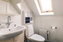 En el exterior, la casa adosada se encuentra en una parcela parcialmente cerrada, donde podrá disfrutar del sol, relajarse con un libro o hacer una barbacoa. Una terraza cubierta ofrece el lugar perfecto para las cálidas tardes de verano. Nota: la zona marcada con una (V) en el plano no es una habitación independiente, sino un rellano de escalera. Corresponde al ático/buhardilla con dos camas, ubicado entre los demás dormitorios, como se describe.