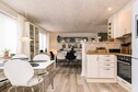 La planta baja cuenta con una cocina abierta y una sala de estar diseñada para la vida familiar. La cocina está bien equipada e incluye lavavajillas, mientras que el comedor y la sala de estar ofrecen amplio espacio para comidas, juegos y relajación. Los amplios ventanales crean un ambiente luminoso y acogedor durante todo el día.