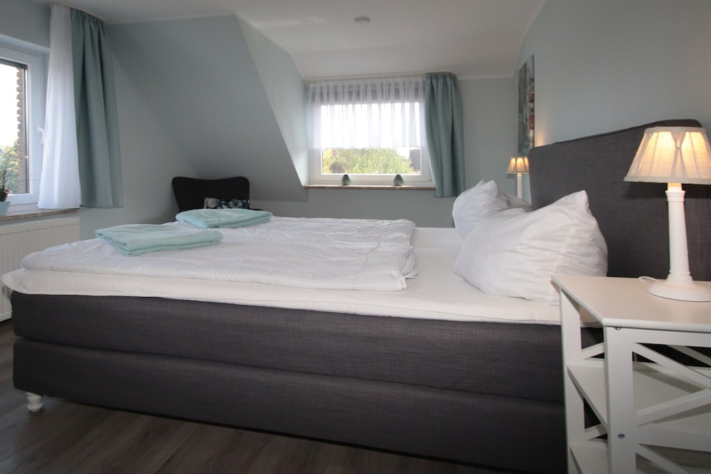 Actividades en los alrededores : El paseo más popular por las marismas del Mar del Norte va desde Neßmersiel hasta la isla del Mar del Norte de Baltrum. Las marismas son fáciles de recorrer en este tramo, a menudo incluso se puede caminar descalzo. Al cabo de unas 2,5 horas, ya habrá llegado a su destino, tras un recorrido de más de 6 kilómetros por el fondo marino. En Baltrum, se pasea por el pequeño pueblo de la isla antes de tomar el ferry de vuelta a Neßmersiel con la marea alta, pasando por un gran banco de focas.