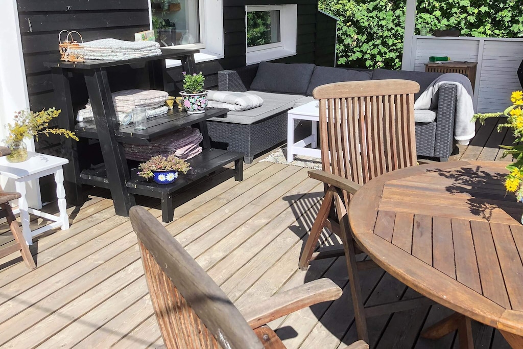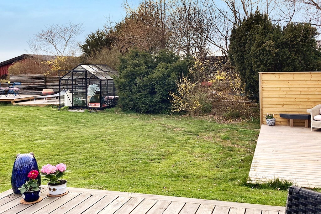 Acogedora casa de campo con gran terraza con vistas al agua ubicada en Bisserup. Hay una cocina abierta con electrodomésticos nuevos con estufa de leña y televisión B & O y Apple TV. No hay canales de televisión en la casa. La TV se puede conectar a su propio equipo. Dormitorio junto al living con puerta de vidrio para brindar buena luminosidad al living. Además, dormitorio con cama de matrimonio de 1,40 my litera. Hay lavadora y secadora. Cerca de la hermosa playa. En Bisserup hay tiendas, restaurante, camping y puerto. No se alquila a grupos de jóvenes.