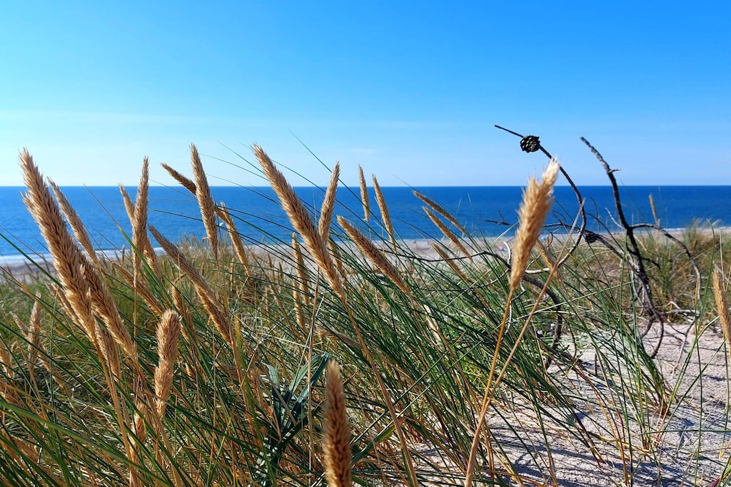 Casa adosada final muy bien ubicada en dos niveles. En la cabaña, la sala de estar y la cocina están conectadas entre sí. Ambas habitaciones son muy espaciosas y tienen acceso a una gran terraza. En el salón también hay escaleras hasta el primer piso, con dos dormitorios. Una casa de campo muy bien ubicada, cerca de la pequeña ciudad de Nymindegab, donde hay una tienda de comestibles y un camping. Casa de vacaciones en Nymindegab - ¡Casa de vacaciones en Dinamarca! Limpieza final gratuita!
