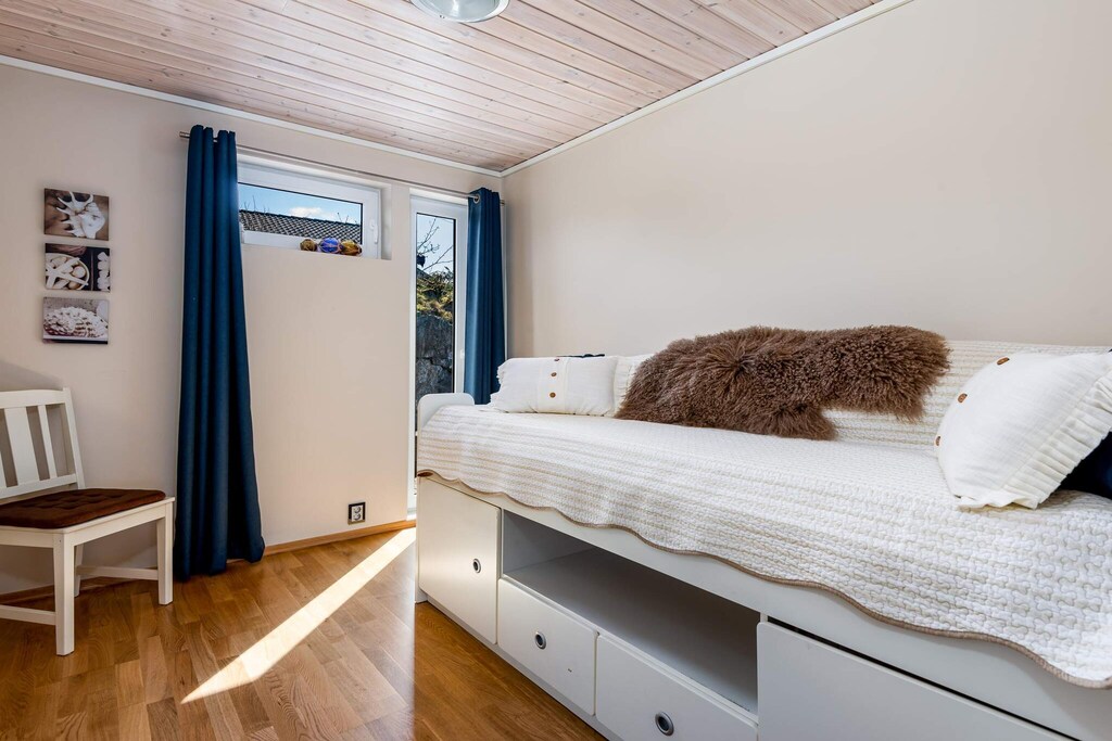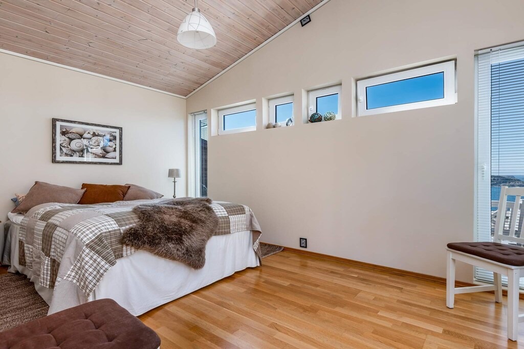 Beautiful, modern holiday home with a panoramic view of the sea, where you can enjoy the beautiful sunsets from the terrace or through the large windows. Bright and pleasant holiday home in quiet surroundings. Through the large glass surfaces, you have a fantastic view of the sea and its changing panorama. A large terrace surrounds the house, here you will always be able to find a cozy, warm spot. Well-equipped kitchen. The house has 3 bedrooms and a loft with two mattresses. Steep stairs up to the loft where you need to be careful. Great fishing opportunities from shore just a few hundred meters away. Good hiking opportunities nearby, also several lakes with fishing opportunities. Close by is Espevær, a car-free island with the famous UFO ring, the lobster park, and a lovely restaurant where you need to book in advance. Youth groups under 25 are not permitted.
