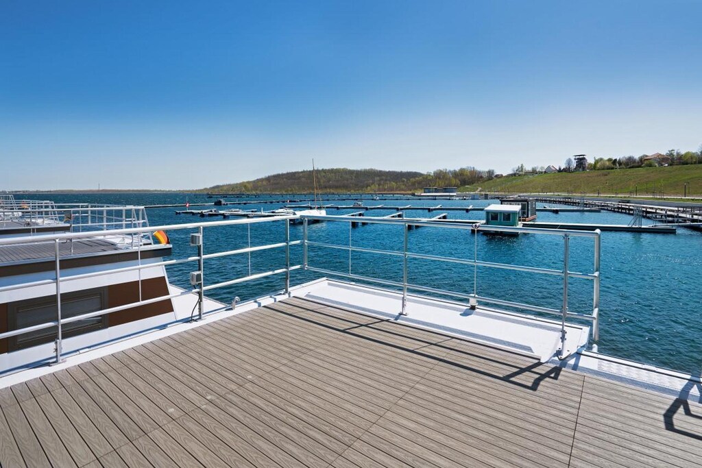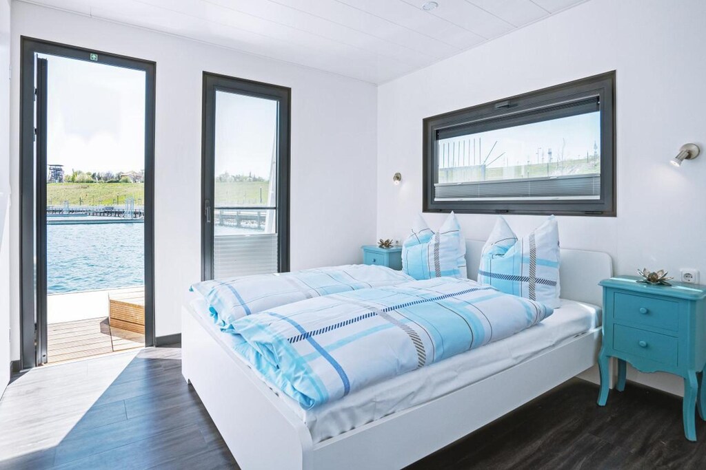 Esta gran casa flotante "Family & Friends" ofrece espacio para hasta 4 personas y mucho estilo acogedor y marítimo. Disfruta de tus vacaciones con toda la familia o pasa unos días de relax con tus amigos lejos del estrés y del día a día. Esta casa flotante estacionaria es una casa de vacaciones flotante y tiene su amarre permanente en Geiseltalsee en el puerto de Braunsbedra en el sur de Sajonia-Anhalt. Cualquiera que disfrute de estar en el agua y disfrutar del ambiente marítimo en el centro de Alemania puede irse de vacaciones aquí. Sobre todo, la vida en una casa flotante significa ser directo y estar en sintonía con la naturaleza. Cuando hace buen tiempo, se puede disfrutar del sol en la terraza o en el gran solárium. Cuando hace mal tiempo, la casa flotante con aire acondicionado y cómodamente amueblada con sus tres habitaciones interiores ofrece a todos los huéspedes suficiente espacio y oportunidades para retirarse. Las fachadas de vidrio en la sala de estar y el comedor refuerzan la sensación de libertad y cercanía con la naturaleza y hacen que la casa flotante parezca luminosa y amigable, pero se puede proteger con sombra en cualquier momento si es necesario. Hay un cuarto de baño con un aseo separado. Además, la calefacción garantiza un ambiente acogedor a bordo incluso en los días fríos.