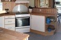 En el interior, el acogedor salón incluye una alcoba que puede utilizarse como dormitorio adicional, ofreciendo una distribución flexible para las familias. La cocina totalmente equipada y el acogedor comedor facilitan la preparación de comidas y la reunión después de un día de actividades al aire libre. Los amplios ventanales garantizan la luminosidad y la amplitud del interior, mientras que el salón ofrece un cómodo espacio para relajarse por las noches.