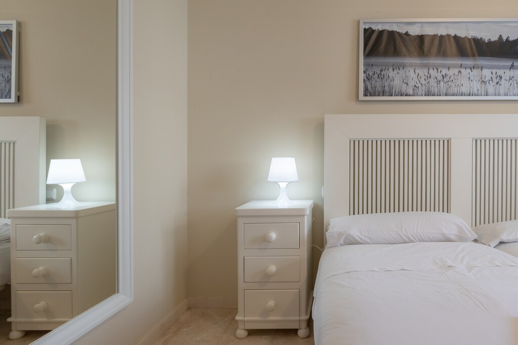 El apartamento es muy amplio y bien organizado, Es luminoso, con dos piscinas y estacionamiento propio, La urbanización es tranquila y está cerca de la playa en coche, Las camas son grandes y los colchones son buenos,