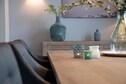 La elegante casa cuenta con un hermoso y luminoso salón. Los cálidos tonos naturales le dan al interior un aire rural.