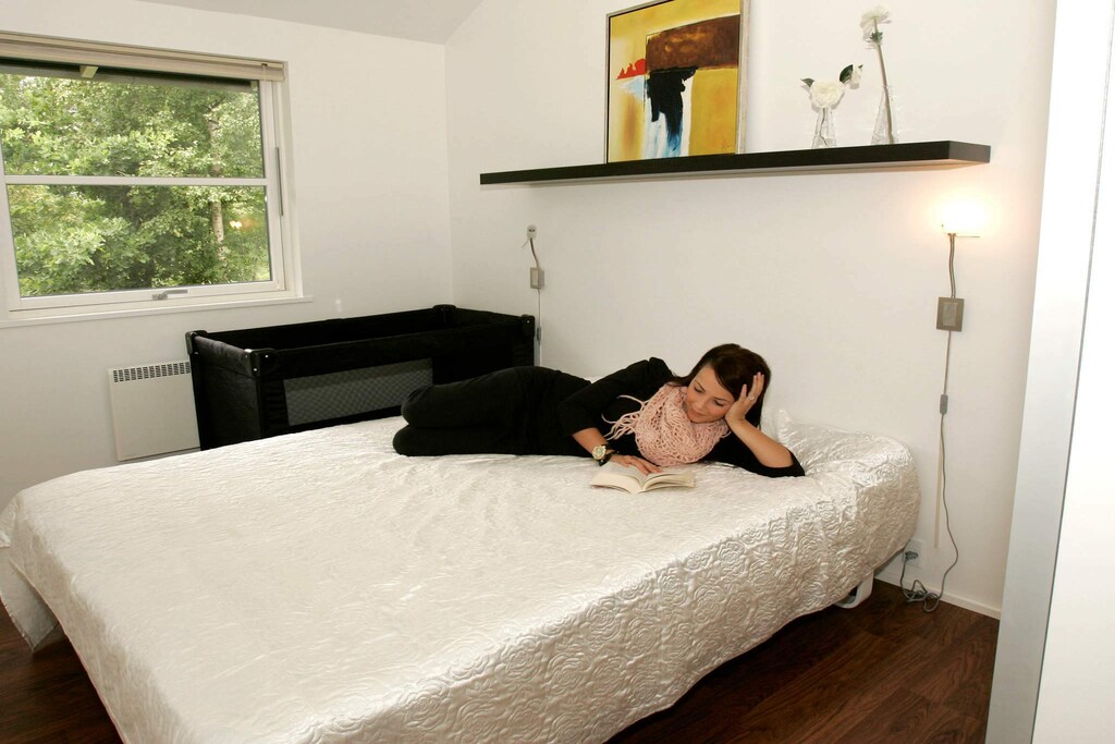 En un entorno tranquilo y pacífico en los suaves bosques de abedules y cuarenta de Helberskov se encuentra esta cabaña aislada, moderna y funcional durante todo el año. La casa fue renovada en 2015 y 2022. La casa contiene dos baños ambos con calefacción por suelo radiante, uno también con bañera de hidromasaje y sauna que se puede disfrutar después de un buen paseo por la zona. Hay tres dormitorios amplios, abuhardillados, conexión de TV, armarios y colchones con somier. La cocina con todo en electrodomésticos está en conexión abierta con la luminosa sala de estar. El salón está equipado con una pantalla plana con canales principalmente alemanes y estufa de leña para las noches más frescas, así como aire acondicionado. Desde el salón hay acceso a una terraza parcialmente cubierta. Desde la terraza hay una vista despejada del jardín, donde hay mucho espacio para juegos de pelota. El jardín tiene arenero, columpios y ducha exterior, además, 100 m & # 178; La terraza está vallada para que los perros traídos puedan correr libremente. La parcela de 2600 m2 está parcialmente ajardinada con césped y naturaleza salvaje. Justo al final de la carretera encontrará una gran isla de arena. El área local es ideal para pescar, ya sea en el fiordo Kattegat o Mariager o en el lago de pesca Put and Take. Dé un paseo en bicicleta por el bosque, a lo largo del fiordo, en Lille Vildmose o en el bosque de Rold. En la zona también hay un Mariager Fjord Golf Club con un campo de 18 hoyos. Un buen escenario para unas vacaciones tranquilas o activas. La suave costa de Kattegat ofrece ricas oportunidades para disfrutar de la vida en la playa. El interior es la naturaleza exuberante y variada de Himmerland con vastos bosques, prados, brezales, pantanos, lagos y gargantas de un verde profundo. Visite Øster Hurup con cafés y ambiente marítimo, bolera y parque acuático. Danmarks Saltcenter en Mariager, Vikingecenter Fyrkat en Hobro, Randers Regnskov, Graceland en Randers, Kattegatcentret en Grenå, Fårup y Djurs Sommerland, Fregatten Jylland en Ebeltoft, Tivoliland Aalborg o el zoológico de Aalborg definitivamente merecen una visita. Si le gustan otras actividades, la zona cuenta con grandes castillos, mansiones y antiguas iglesias de pueblos. No se alquila a grupos de jóvenes.