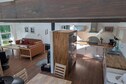 Das Haus hat eine tolle Grundausstattung und der Wohnbereich ist besonders schön gestaltet, Die offene hohe Decke ist wirklich schön, Die angrenzende Terrasse (eingezäunt) ist groß und gut erhalten,