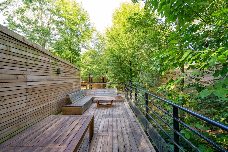 Alójese en Lushwood, un refugio de 85 m² enclavado en el bosque de Domaine du Bois de Fouage. Diseñado para un máximo de cuatro huéspedes, cuenta con un acogedor dormitorio, un entrepiso con sofá cama, dos baños, una cocina totalmente equipada y una sala de estar con chimenea. Disfrute de las serenas vistas desde sus dos terrazas y relájese con las comodidades modernas.