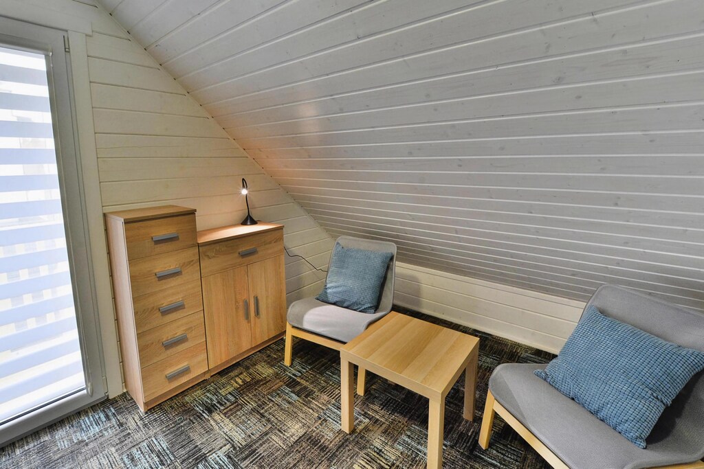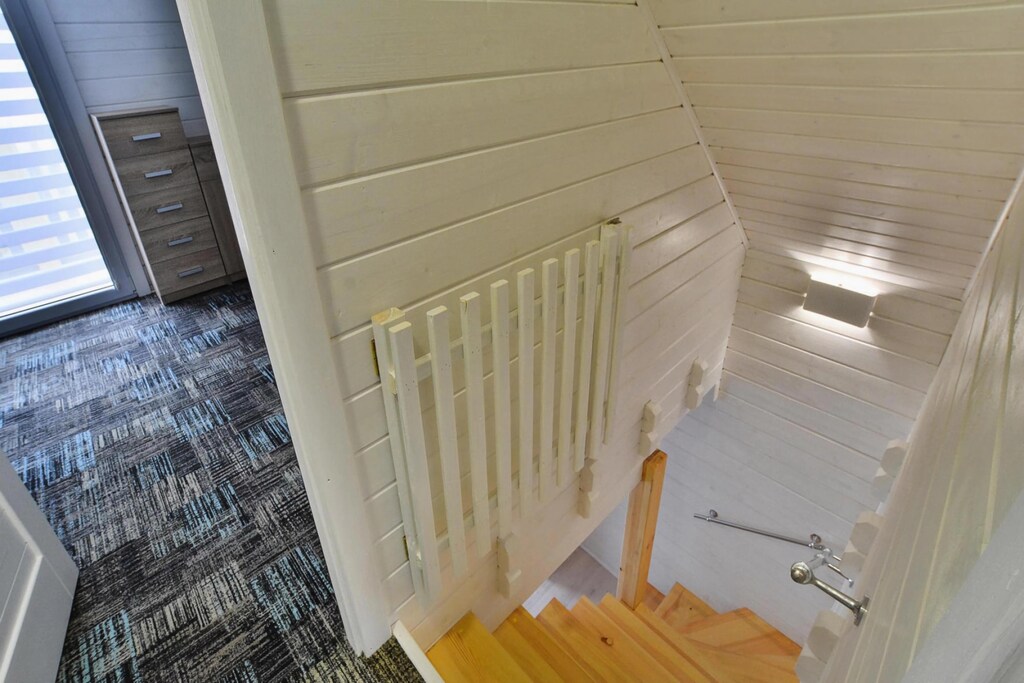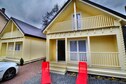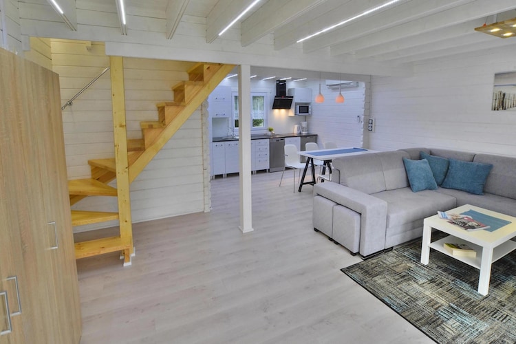 Cada casa tiene una terraza cubierta y un balcón en el primer piso. Entre las casas hay una chimenea de ladrillo macizo con ahumadero (disponible para los huéspedes de ambas casas de verano). Las cabañas disponen de aire acondicionado con funciones de refrigeración y calefacción. Cada casa consta de salón con cocina bien equipada, 2 dormitorios independientes (en el primer piso) y baño con ducha. La terraza está equipada con barbacoa, muebles de jardín, biombo y tumbonas. Internet inalámbrico está disponible. Toallas bajo petición (cargo extra).