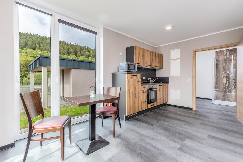 Bungalow var herlig og godt vedlikeholdt, Vi likte spesielt terrassen for kveldsgrilling mens vi var omgitt av vakker natur, Det var et flott sted å slappe av etter å ha utforsket den nærliggende Eifel nasjonalpark