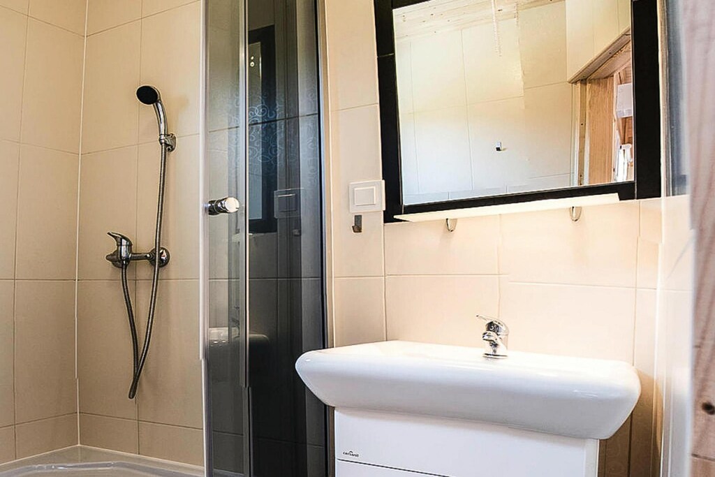 Bonitas casas de madera de una sola planta. Cada uno consta de sala de estar con sofá cama doble, zona de cocina, 2 dormitorios independientes y baño con ducha. Cada casa tiene una terraza cubierta con un conjunto de muebles de jardín. Hay instalaciones de barbacoa disponibles. Internet inalámbrico está disponible.