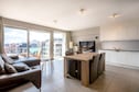 Bienvenido a su soleada escapada a la playa, un apartamento bellamente modernizado que irradia calidez y estilo. Entre en la acogedora sala de estar, donde el mobiliario contemporáneo crea un ambiente relajante. Disfrute del entretenimiento con un televisor de pantalla plana y wifi gratuito a su disposición. El diseño de concepto abierto se integra a la perfección con la cocina totalmente equipada, con vitrocerámica, horno, lavavajillas y amplio espacio de almacenamiento, ideal para preparar comidas informales o banquetes elaborados para familiares y amigos.
