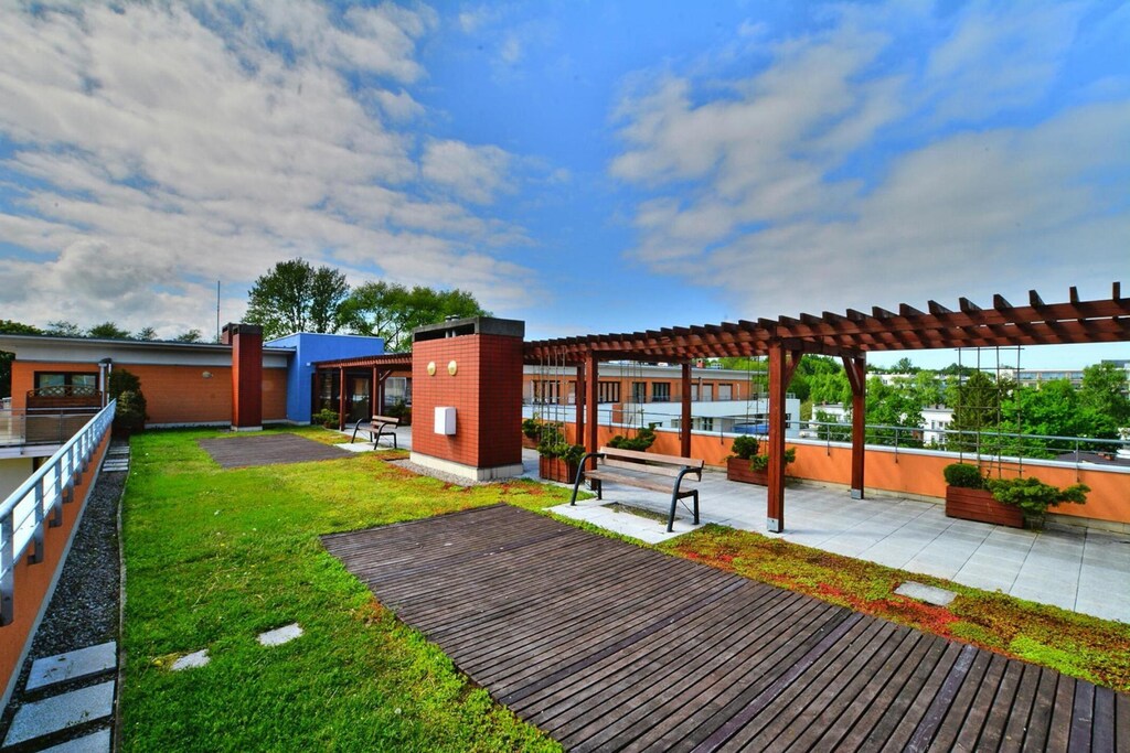 Una gran terraza de relajación en la azotea del edificio, así como una sala de fitness, están a disposición de todos los huéspedes del complejo. Hay un aparcamiento público rodeando el edificio.