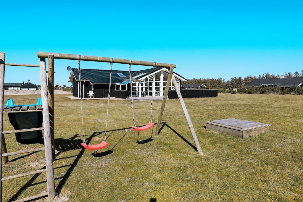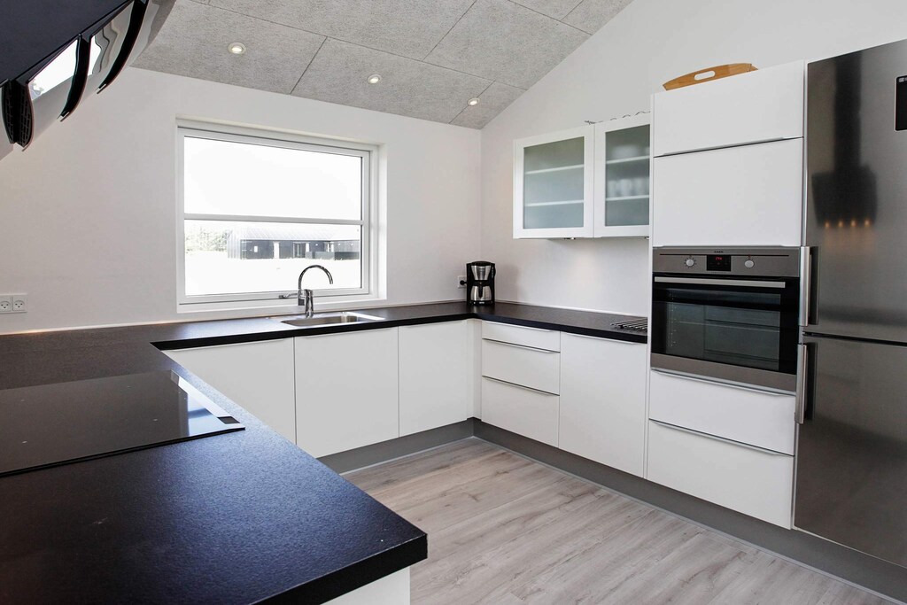 Casa de campo diseñada por un arquitecto con bañera de hidromasaje ubicada en el atractivo Løkken South, a poca distancia a pie de la ciudad de Løkken. La casa contiene una sala de estar en conexión abierta con la cocina, cuatro dormitorios, buhardilla, baño con ducha, suelo radiante e hidromasaje, aseo de invitados y hall de entrada con lavabo. La casa está decorada con muebles modernos de estilo danés y decoración a juego. Hay una luz única y una decoración absolutamente óptima. Hay 13 m & # 178; Terraza cubierta y amplia terraza descubierta. Parte de la terraza orientada al sur / oeste está equipada con vidrio, por lo que es posible disfrutar de la vista y al mismo tiempo estar al sol y protegido del viento del oeste. La parcela es una parcela natural llana y abierta. Se han instalado columpios y una caja de arena para los niños. La casa está equipada con bomba de calor aire / aire, por lo que se pueden esperar pequeños costos de calefacción. No se alquila a grupos de jóvenes.