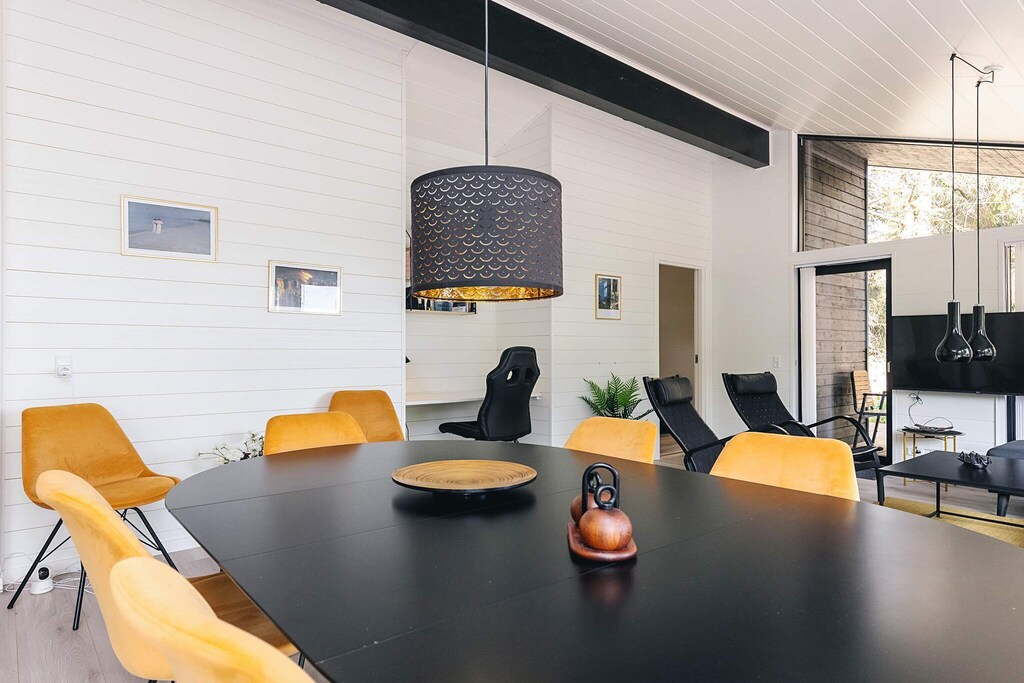 La cocina, el comedor y la sala de estar se combinan en una sola estancia, y desde la cocina bien equipada, se puede tener una buena visión general de lo que hace el resto de la familia. Esta encantadora sala común es el lugar ideal para disfrutar de las vacaciones relajándose con un juego de mesa o sumergiéndose en la lectura de un buen libro.