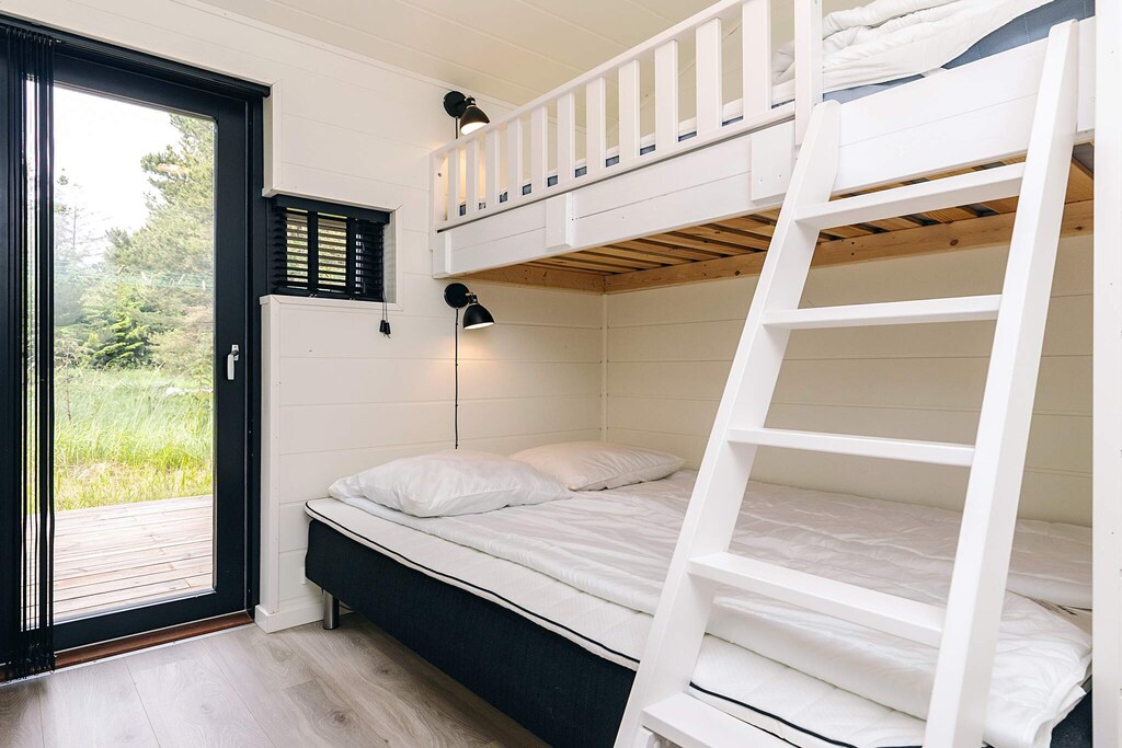 La casa vacacional se encuentra en la popular zona residencial de Bunken, entre Skagen y Ålbæk, en la costa este de Jutlandia Septentrional, a aproximadamente 1 km de una de las playas de arena blanca más hermosas, vírgenes y aptas para niños de Dinamarca.