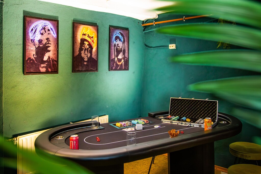 ¡Bienvenidos a una escapada encantadora donde la historia se fusiona con el confort moderno! Esta antigua bodega, bellamente restaurada, es el lugar perfecto para grupos grandes que buscan algo verdaderamente especial. Con doce habitaciones de diseño único y doce elegantes baños, hay espacio de sobra para que todos se relajen y disfruten de la compañía mutua. La espaciosa cocina les espera para preparar delicias culinarias juntos, mientras que la exclusiva zona de entretenimiento promete horas de diversión con air hockey, billar, futbolín, tenis de mesa e incluso máquinas recreativas retro. Además, un completo sistema de sonido crea el ambiente perfecto para cualquier reunión.