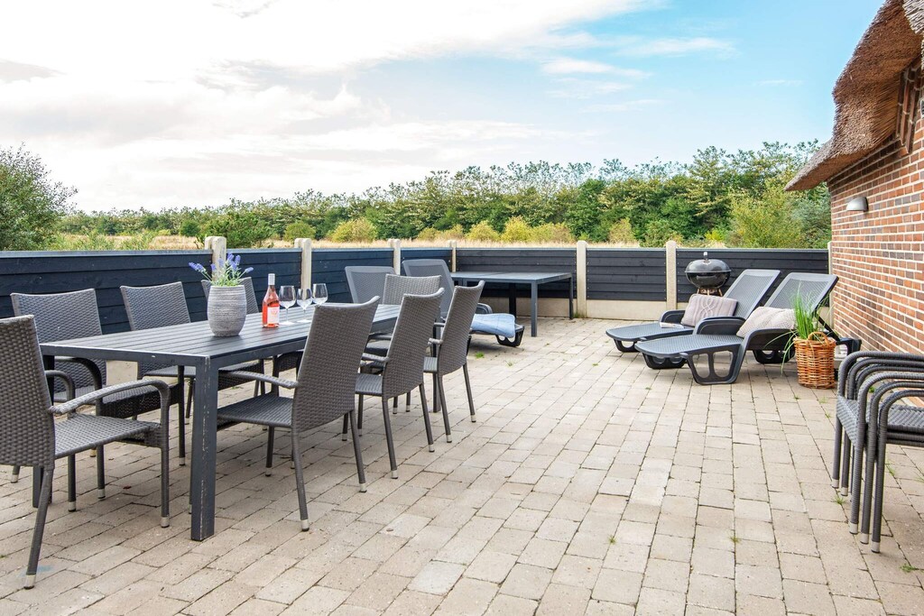 Casa de campo ecológica para 16 personas con piscina, jacuzzi, sauna y diversas actividades ubicada en una gran parcela natural de 3.500 m2 aprox. 1.300 metros del Mar del Norte y a poca distancia de Husby Klitplantage. La zona de la piscina de la casa cuenta con piscina de 24 m2, tobogán, gran jacuzzi, sauna y baño con ducha. Esta fantástica casa de campo contiene todo el lujo y el confort necesarios para crear unas vacaciones maravillosas. Si sois dos familias que quisieran ir de vacaciones juntas, la casa está muy bien amueblada, ya que hay dos áreas de dormir separadas, cada una con su propio baño. En la gran cocina / sala de estar y en el área de la piscina hay mucho espacio para reuniones acogedoras. La casa está amueblada con dos áreas de dormir separadas, ambas con dos habitaciones dobles y una habitación con cuatro literas y un baño con ducha. Todas las habitaciones tienen suelos de madera y armarios. En el centro de la casa hay un gran salón en conexión abierta con la cocina. En la sala de estar hay una estufa de leña, un comedor y un grupo de sofás ubicados en el centro. La cabaña con techo de paja está aislada de acuerdo con los últimos estándares y se calienta con calor geotérmico, lo que proporciona un bajo consumo de energía en comparación con las casas de la piscina más antiguas. Hay calefacción por suelo radiante en toda la casa. En el exterior hay buenas terrazas a ambos lados de la casa con buen abrigo, donde se puede disfrutar del sol y los niños pueden dar vueltas en la gran parcela. Hay una cancha de petanca y una portería de fútbol junto a la casa.