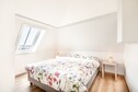 1er piso: En el primer piso se encuentra el baño con bañera, ducha, lavabo e inodoro. 2 amplios dormitorios con cama doble (somier), 1 cuna y mucho espacio en el armario. Pasas al siguiente piso por las escaleras.