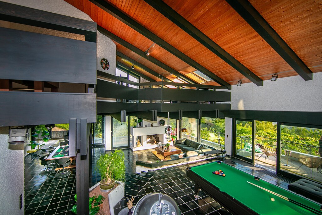 Relájese en el jacuzzi del balcón, disfrutando de las vistas panorámicas que se extienden por el pintoresco paisaje. Para una escapada refrescante, sumérjase en la espaciosa piscina cubierta de agua fría o relájese en la sauna finlandesa. Abundan las opciones de entretenimiento, con mesa de billar, futbolín y rocolas vintage, perfectas para disfrutar de animadas tardes con amigos o familiares. En el exterior, el amplio jardín le invita a relajarse al aire libre con una acogedora mesa de comedor, barbacoa e invernadero, ideal para reuniones de verano. Con cinco plazas de aparcamiento privadas y públicas convenientemente ubicadas en las inmediaciones, llegar y salir es muy sencillo.