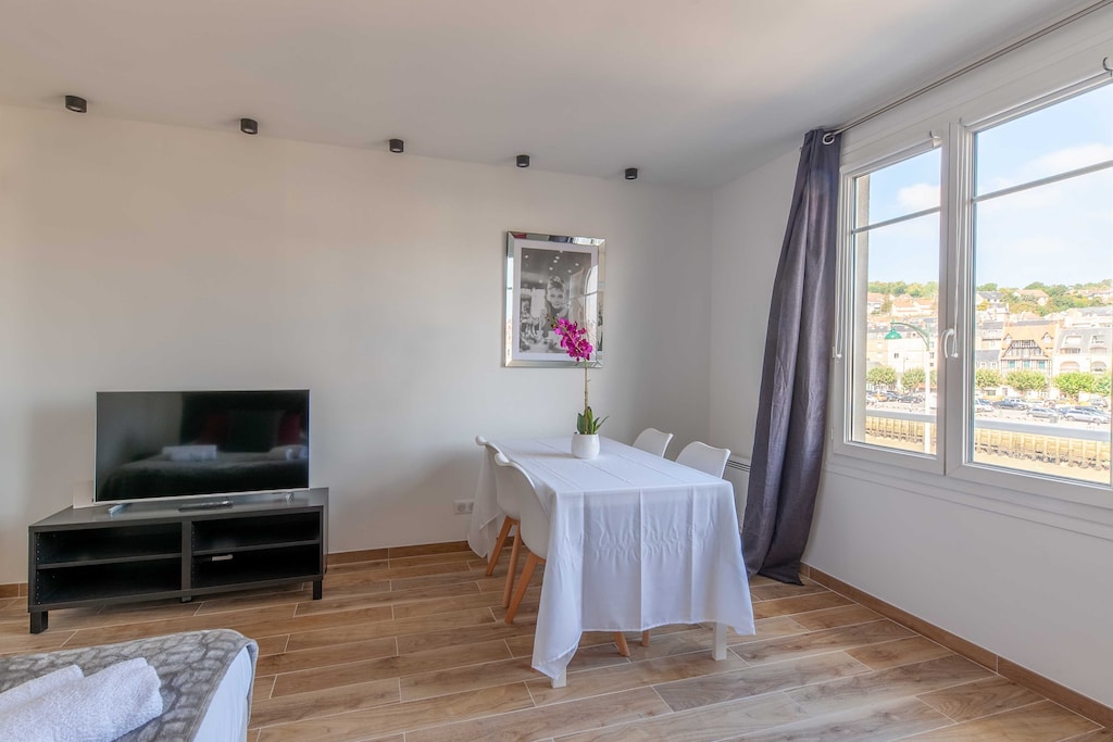 The location is excellent, just a few minutes away from the train station, The apartment is spotless, with fresh modern decor and a fantastic view, Communication was quick and effortless, We would choose it again if we return to Deauville,