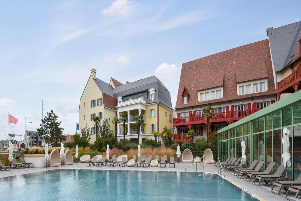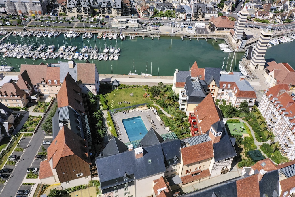 Complejo vacacional en una construcción con entramado de madera típica de la región, con una ubicación excelente. Rodeada por el puerto deportivo y el estuario de Touques, esta pequeña península se encuentra en una ubicación céntrica entre las localidades de Deauville y Trouville. A solo 10 minutos de la playa de arena o del centro de Deauville. Los amplios apartamentos, decorados con buen gusto, cuentan con balcón o terraza. Una piscina cubierta, una piscina exterior climatizada y una zona de spa completan el conjunto de este complejo. ¿Desea llegar en tren? No hay problema. La residencia está a 300 metros de la estación de tren. Por supuesto, también hay plazas de aparcamiento disponibles para quienes lleguen en coche, así como dos estaciones de carga eléctrica (2,3-7 kWh).