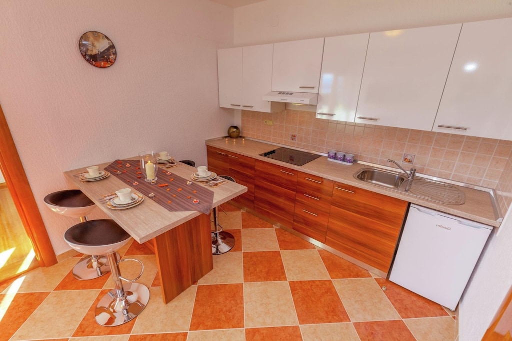 Este lujoso apartamento se encuentra cerca del paseo marítimo en Dramalj. El apartamento de un dormitorio es ideal para una pareja y ofrece un jardín privado con asientos para disfrutar de su desayuno con vistas panorámicas o tener una sesión de barbacoa por la noche.