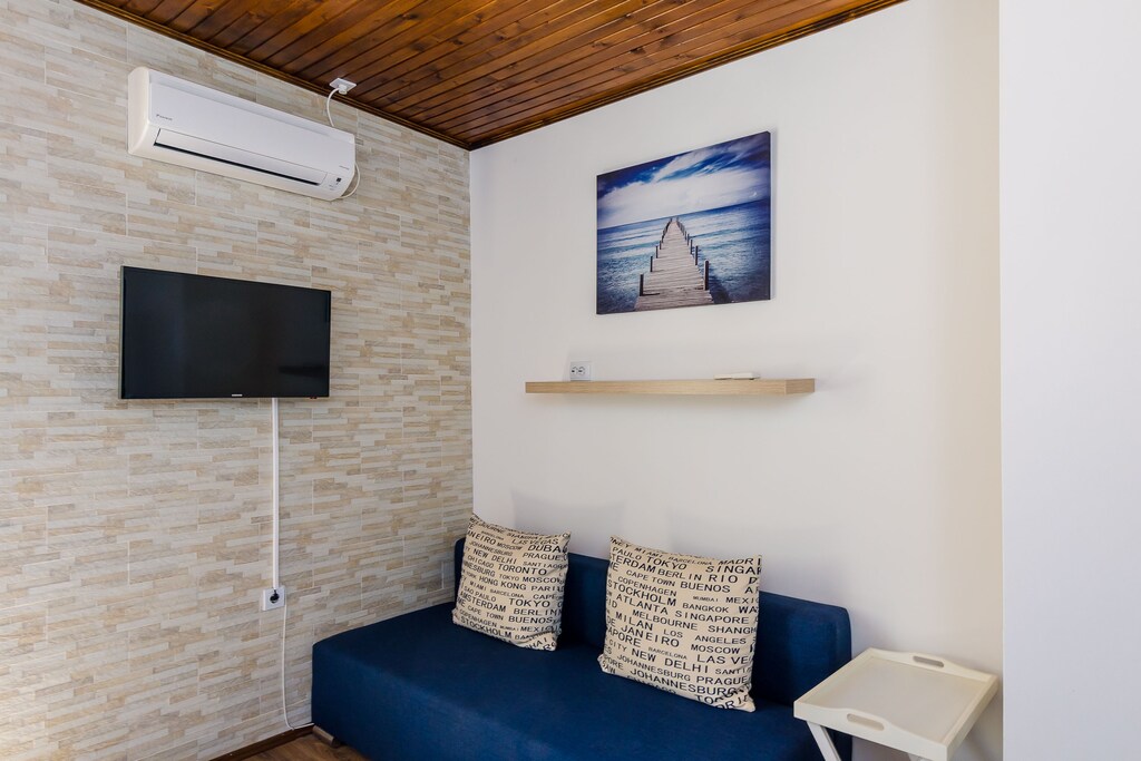 Overlooking the Adriatic sea, this triple room is perfectly fit for up to three people. It features free WiFi, air conditioning, SAT LCD TV, sofa, refrigerator with freezer, electric kettle as well as a private bathroom with shower and toilet.