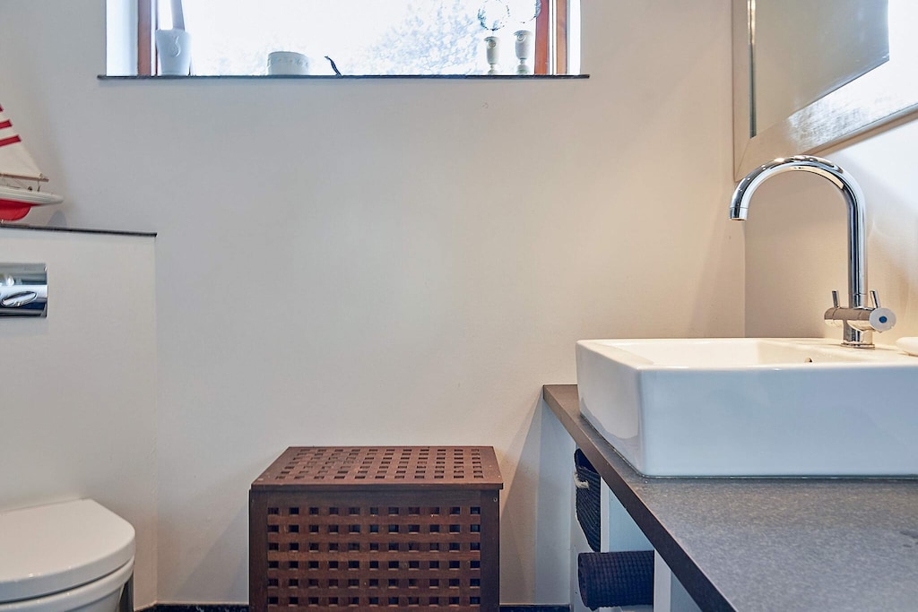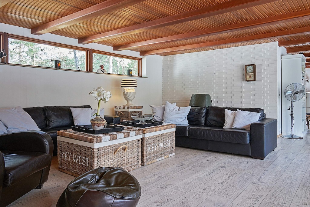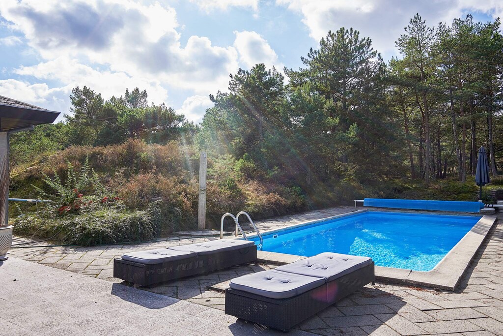 Amplia casa de campo con piscina climatizada al aire libre y una ubicación fantástica junto a los impresionantes paisajes de dunas de Dueodde y una de las mejores playas de arena del país. Un gran solárium rodea la piscina al aire libre, que se calienta en el período del 15 de mayo al 15 de septiembre. La cabaña está decorada en un estilo escandinavo claro. Cocina grande y abierta con todo en electrodomésticos y, por supuesto, también una nevera para vinos. Dos dormitorios y un pequeño anexo. Desde el gran salón hay acceso directo a la terraza. Una terraza parcialmente cubierta permite la relajación y acogedoras noches de barbacoa. No se alquila a grupos de jóvenes.