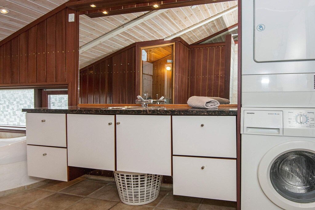 Esta casa de campo bien cuidada con bañera de hidromasaje y sauna se encuentra a unos 450 metros de una playa de baño absolutamente buena en Fjellerup. La casa está amueblada con tres buenos dormitorios y un loft donde a los niños les encanta quedarse. La familia puede cocinar en la cocina / sala de estar bien equipada. La cabaña está amueblada con un baño fantástico y si lo que busca es relajación pura, puede utilizar la bañera de hidromasaje y la sauna de la casa. Además, podemos recomendar sentarse y disfrutar de las llamas de la estufa de leña de la casa, que está ubicada en el centro de la sala de estar. Siempre es un éxito sentarse en la terraza cubierta y disfrutar del clima de verano danés o tumbarse en una de las tumbonas de la casa. La parcela está vallada para que el perro pueda correr libremente. No se alquila a grupos de jóvenes.