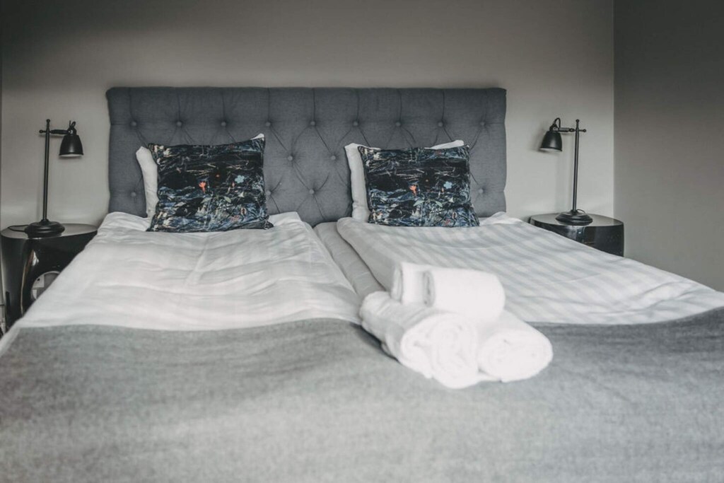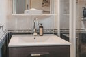 De trendy badeværelser var en behagelig overraskelse, De tilføjede en unik stil til den samlede rumoplevelse,