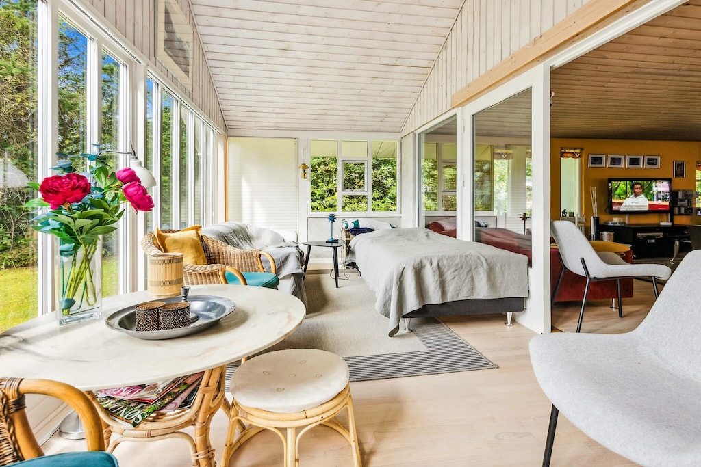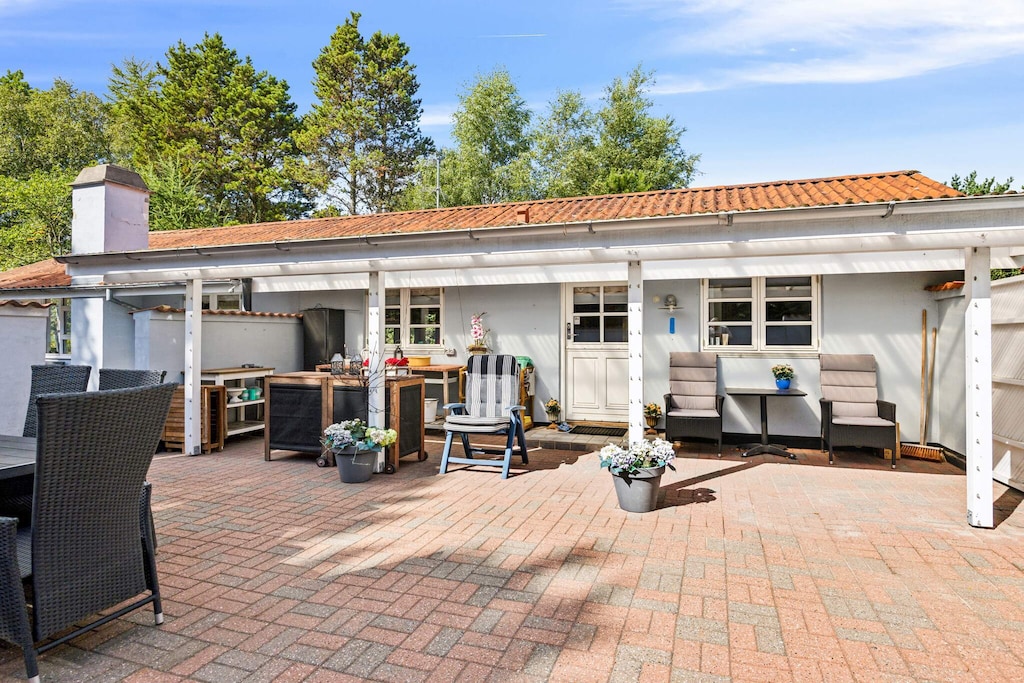 Cozy Summer House in Hou – Sleeps 5, Only 1 km from the Beach Welcome to this charming and well-equipped summer house located in the popular holiday town of Hou, close to shops, restaurants, and a lovely sandy beach less than 1 km away. The house sleeps 5 guests and offers flexible sleeping arrangements: a bedroom with a double bed, a single bed in the bright conservatory, and a separate annex with a double bed and its own bathroom – perfect for families or friends traveling together. The kitchen is fully equipped with a dishwasher, oven, microwave, coffee machine, stove, refrigerator, and a separate fridge/freezer, making it easy to prepare your own meals. The bathroom in the main house also includes a washing machine. The living room features a comfortable sofa area, dining table, TV, and CD player – ideal for relaxing after a day at the beach. Outdoors, you can enjoy the sun on two large terraces, one of which is partially covered and furnished with garden furniture. The terrace also includes a practical outdoor kitchen with tableware, so meals can be easily enjoyed under the open sky. A perfect base for a relaxing holiday in beautiful surroundings – close to nature, the beach, and vibrant town life. Not rented to youth groups or construction workers.A refundable deposit might be charged closer to your check-in date. The security deposit ensures a smooth stay and covers any additional services or consumption charges.This deposit covers utilities consumed during your stay and any additional services that may be taken.The final amount will be adjusted based on actual meter readings, actual usage of extra services, and any remaining balance will be refunded within 21 days after checkout.This deposit simply acts as a prepayment for charges that you would anyways pay for, ensuring a seamless stay and check-out experience.