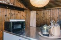 La cabaña cuenta con espacio para dormir para cuatro personas (normalmente una cama doble y una litera), una pequeña cocina con placas eléctricas, nevera y vajilla, así como un cómodo comedor y sala de estar. Con calefacción eléctrica y buen aislamiento, es ideal para todas las estaciones. En el exterior, una terraza privada con mesa y sillas le invita a cenar o relajarse al aire libre.