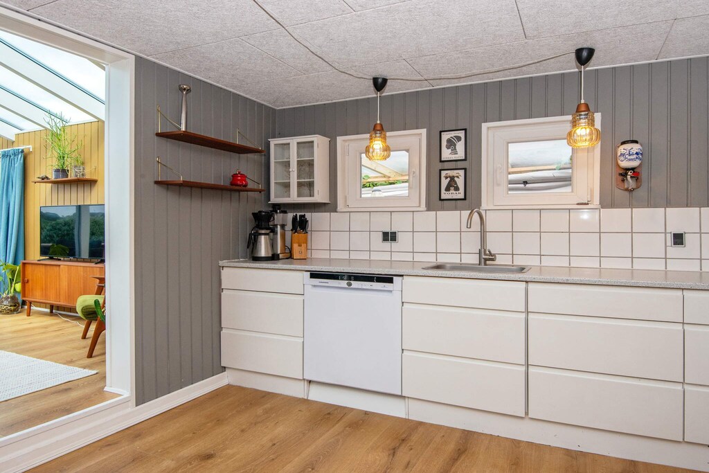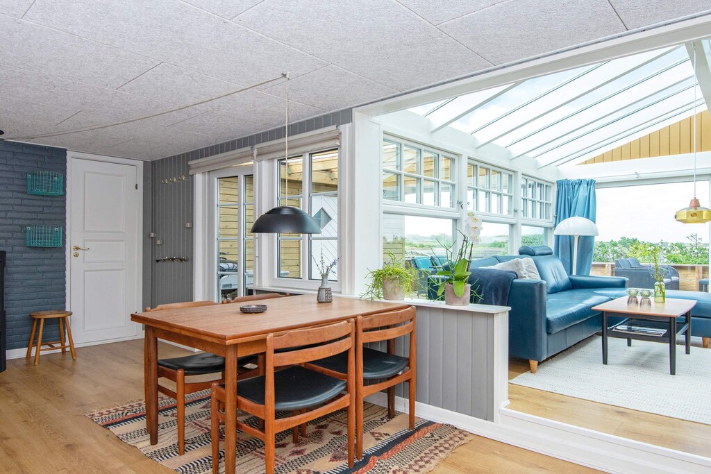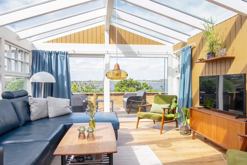La casa se mantiene en constante mantenimiento y, en 2021, se incorporó un nuevo invernadero, que desde entonces se utiliza como sala de estar. Desde aquí, una puerta corredera da acceso a la hermosa terraza. El invernadero aporta mucha luz a la casa y, al mismo tiempo, ofrece unas vistas increíbles del agua.