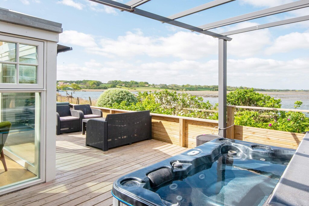 Casa de vacaciones con magníficas vistas al agua y una maravillosa terraza, además de un jacuzzi exterior para relajarse. ¡Aquí podrá relajarse al aire libre y disfrutar del magnífico paisaje costero desde primera línea!