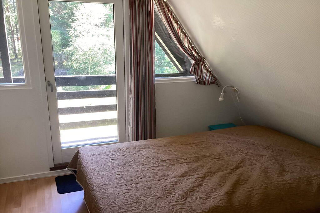 La primera planta ofrece dos dormitorios, cada uno con cama doble, uno de ellos con acceso a un balcón cubierto con vistas al entorno natural. Un acogedor altillo (hems) ofrece espacio adicional para dormir, ideal para niños o invitados adicionales. En la planta baja, hay un tercer dormitorio con cama doble, un baño con sauna y un segundo baño con bañera de hidromasaje. La cocina, antigua pero funcional, incluye lavavajillas.
