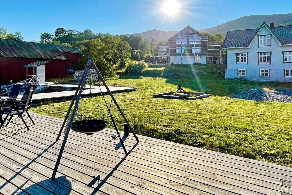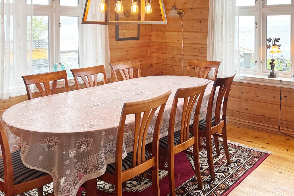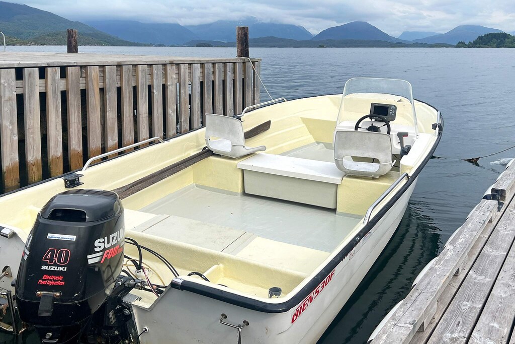 Pleasant holiday home on sea plot with panoramic view of the fjord. Great fishing opportunities in amazing archipelago idyll. Final cleaning included in the price. Cozy, partially renovated holiday home with a fireplace in the living room. German TV via AppleTV in addition to Norwegian/international channels. Three bedrooms; the beds can be put together to make double beds. Well equipped kitchen. Bathroom with WC, shower, and underfloor heating. Quay/floating jetty by the sea. The river Ørstaelva, 30 km away, beckons with salmon and trout. The lake Skogevatnet with trout, 6 km. Swimming opportunities at long shallow beach 300 m from the holiday house and 25 m to wharf with swimming ladders. Alternatively, Overåsanden, a beautiful sandy beach with a sand volleyball court 30 km away, or beautiful beaches on Flø, 18 km. The town of Ulsteinvik is 14 km away. From the holiday home, there are numerous islands and islets within a short distance by boat. Here, you can fish in sheltered waters all year round, or go further into the Rovdefjord. You can also take the trip through Dragsundet and beyond in closed waters. Here in the fjords, the cod comes in the spring in February, March, and April. 25 meters to the floating jetty with the rental boat. Covered/indoor filleting area with light and running water. Boat for rent: 1x 18-foot Øien 530F with 40 HP Suzuki, GPS/chart plotter/sonar and 8 rod holders