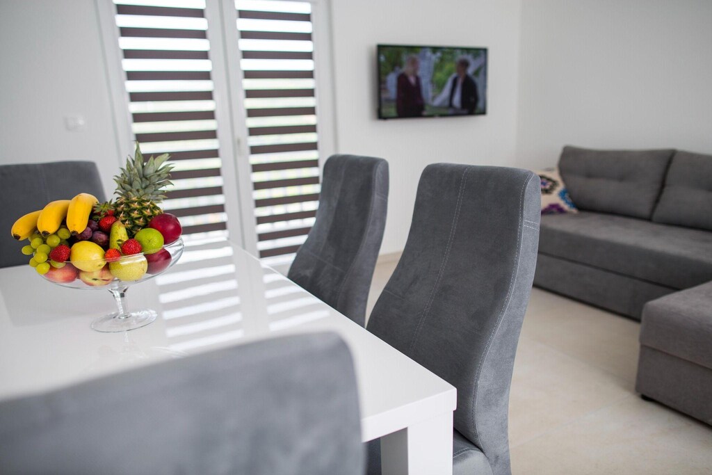 Adéntrese en este impresionante apartamento de 1 dormitorio en Imotski, donde los elegantes interiores blancos crean un refugio luminoso y elegante con capacidad para hasta 4 personas. Ideal para familias pequeñas o grupos de amigos, el apartamento ofrece un jardín amueblado y una terraza, perfectos para tomar un café por la mañana o relajarse con la puesta de sol.