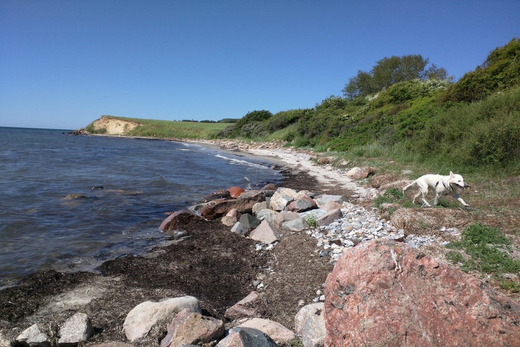 En el exterior, la terraza ofrece amplias posibilidades para hacer barbacoas, cenar o relajarse al aire libre. La ubicación es particularmente atractiva, con el agua y el muelle a solo 150 metros, lo que permite un fácil acceso para nadar, pescar o navegar. Tiendas y un restaurante están a aproximadamente 2 km de la propiedad, lo que garantiza que los artículos esenciales y los restaurantes estén a poca distancia. Esta casa de vacaciones es una opción tranquila y familiar para una estancia inolvidable en Enø. No se permite el alquiler a grupos de jóvenes.