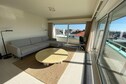 El luminoso salón se abre a un soleado balcón, ideal para disfrutar del ambiente costero. La cocina abierta da a una amplia terraza con preciosas vistas laterales al mar, ideal para tomar un café por la mañana o relajarse al atardecer. La zona de noche cuenta con tres acogedores dormitorios: uno doble con baño en suite, otro con literas dobles y un baño adicional, y un tercer dormitorio con literas individuales, ideal para familias o grupos.