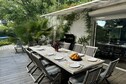 Villa de vacaciones de diseño original con piscina privada (16 m²) en el atrio: Bungalow en planta baja con 4 dormitorios y 3 baños que ofrece un excelente confort y mucho espacio para una familia numerosa o un grupo de amigos. El elegante área de cocina y comedor en la cocina y la terraza de diseño cómodo son el punto focal para las reuniones sociales. La ubicación de la casa es ideal para viajes a los conocidos balnearios de Lacanau o Arcachon.A unos ocho kilómetros de la larga y hermosa playa de arena del Atlántico se encuentra la pequeña comunidad de Le Porge entre bosques vírgenes en una reserva natural. El famoso balneario de Lacanau está a unos 18 kilómetros de distancia. Puede conducir hasta el centro de Burdeos en aproximadamente una hora.