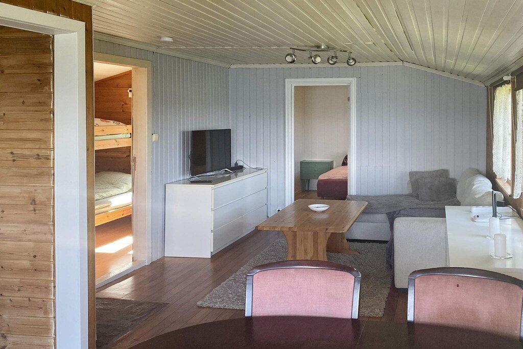 Holiday home by the Fensfjord, surrounded by mountains, with countless opportunities for walks in nature. Final cleaning included in the price. Holiday home with separate kitchen and wood burning stove in the living room. Internet TV and ChromeCast. Internet for streaming with 500 MBits top speed. 2 bedrooms, one with 1 double bed that can be split into two separate beds, and one with a family bunk where the lower bunk is 120 cm wide and the upper bunk 90 cm. Same kind of family bunk bed in the annex. 40 m to car park. 70 m to swimming opportunities from smooth rocks, pier, and sandy beach. 55 min. drive to Bergen with everything you can experience in a beautiful western village. These include Fløybanen, Ulriksbanen, Akvariet and not least Bryggen with its cozy restaurants. Fishing is good in the Fensfjord, where you can get most fish species, such as cod, saithe, ling, tusk, and halibut. Covered filleting area for fish with running water and light. 70 m to the marina where the rental boats are located. Boat for rent: 1x 18 foot Øien 530 with 30hp Honda, echo sounder, chartplotter, GPS and 4 pole holders