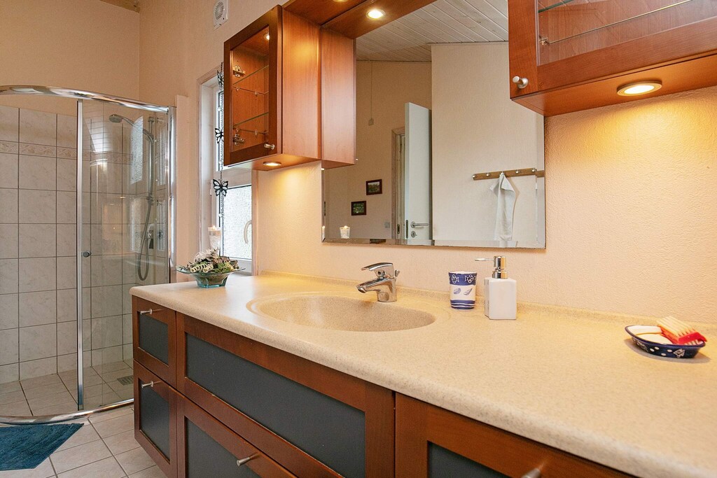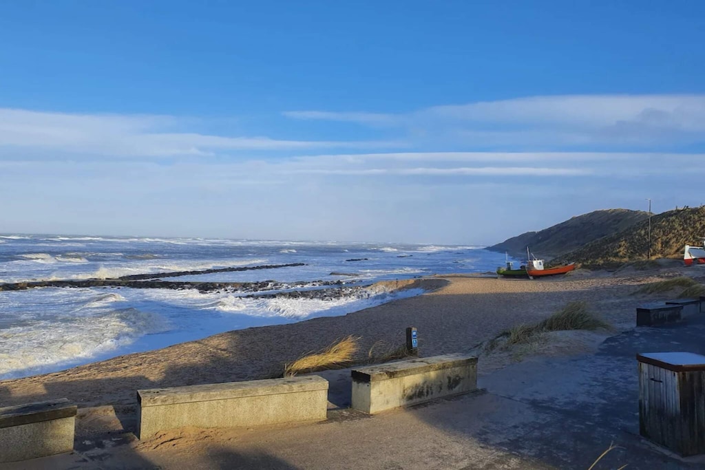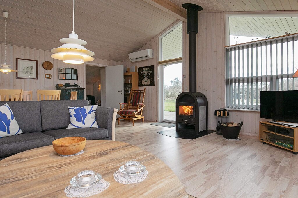 Casa de vacaciones luminosa y bien equipada con sauna ubicada en una atractiva zona de casas de vacaciones en las afueras de Lønstrup. La cabaña contiene una sala de estar / cocina en conexión abierta y con acceso directo a la terraza, tres dormitorios, altillo, baño con ducha y calefacción por suelo radiante y sauna para 4-6 personas. El mobiliario es de buen gusto en el estilo de una casa de campo danesa moderna, con especial énfasis en la calidad, el bienestar y la comodidad, una decoración a medida. Para el entretenimiento hay acceso a Internet, así como TV con canales internacionales. Para comodidad y calefacción económica hay una estufa de leña. En el salón también hay una bomba de calor aire / aire. Hay una pequeña terraza cubierta, así como una gran terraza abierta. La parcela es una parcela natural llana rodeada de plantación. Aquí encontrará un refugio para pernoctaciones al aire libre. Para los niños hay columpio y cajón de arena. Hay cochera.
