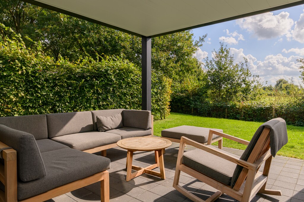 From the living room, you can reach the spacious garden with garden furniture (garden and lounge set) and an attractive porch with a heater and barbecue. This is truly an extension of the living room. There's space to park one car right outside your villa.