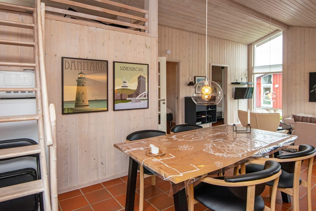 Renovada por última vez en 2020, la propiedad cuenta con una amplia terraza vallada con orientación sur y este, desde donde podrá disfrutar de fantásticas vistas al mar. Ubicada en una zona vacacional ideal para familias en la costa este de Als, la propiedad combina el encanto costero con fácil acceso a pintorescas rutas de senderismo y ciclismo que atraviesan bosques y paisajes ondulantes. Su proximidad a la frontera germano-danesa también la convierte en una excelente opción para viajeros que buscan variedad cultural y excursiones de un día. Tenga en cuenta que no se alquilan a grupos de jóvenes, lo que garantiza un ambiente tranquilo y familiar.