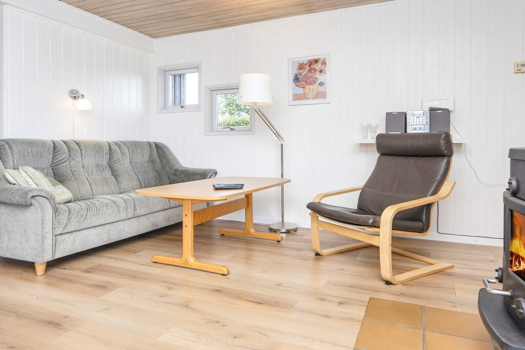 Cabaña tradicional ubicada con vista al agua tanto desde la casa como desde la terraza. La casa está amueblada con una cocina bien equipada con i.a. lavavajillas, congelador, horno de convección, microondas y vitrocerámica. El comedor / sala de estar combinados está cómodamente amueblado y está equipado con i.a. Estufa de leña, bomba de calor de bajo consumo, TV con antena parabólica (digital), reproductor de DVD y equipo de música con reproductor de CD y acceso a la terraza cubierta. El lugar para dormir se divide en 1 dormitorio doble y un sofá cama doble en la sala de estar. Además, anexo con cama de matrimonio. Baño con ducha y suelo radiante. El hall de entrada tiene lavadora y secadora. La cabaña está ubicada en una zona pintoresca con buenas oportunidades para pescar.
