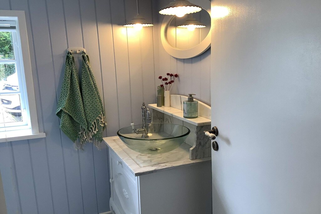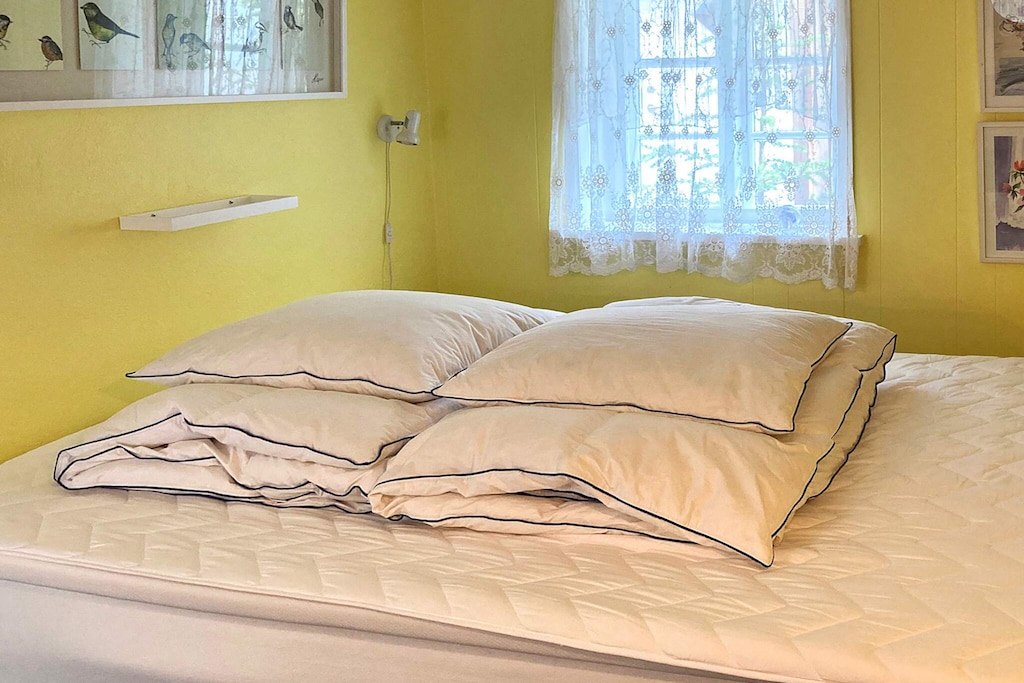 La casa ofrece una habitación doble y una segunda habitación con una litera, con dos plazas individuales. El baño está equipado con cabina de ducha y lavadora. Tenga en cuenta que el techo en algunas zonas es bajo (aproximadamente 170 cm).